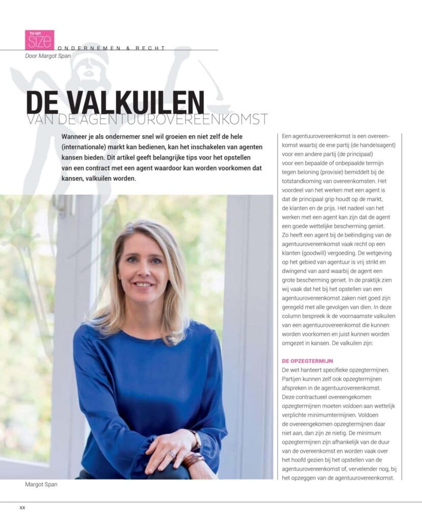 Deze maand in ‘The right Size’ in de column ‘Ondernemen & Recht’ het artikel van Margot Span over de valkuilen van de agentuurovereenkomst.