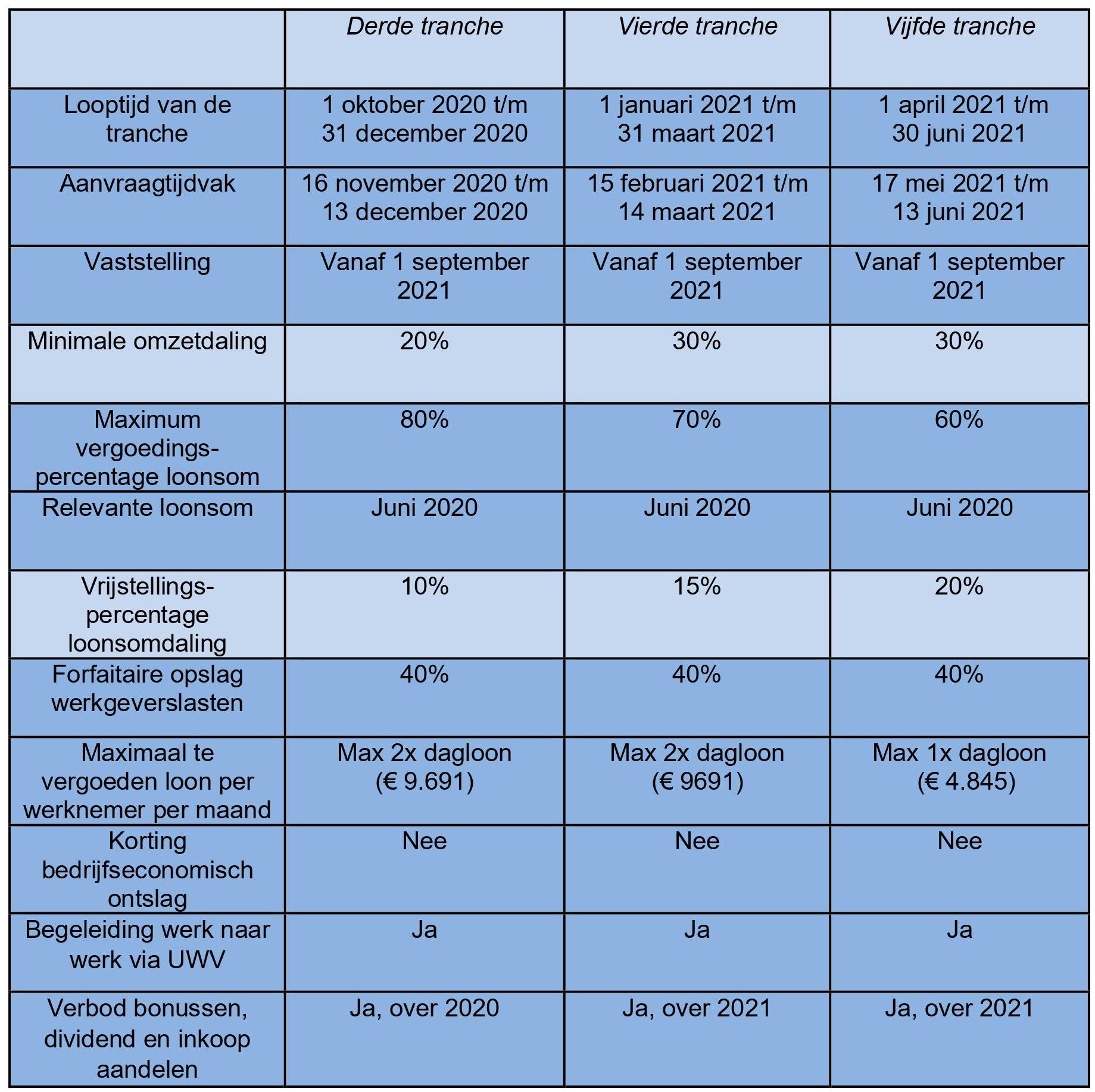 Voor NOW 3.0 gaat de minimaal vereiste omzetdaling omhoog. De omzetdaling wordt nog steeds vergeleken met de omzet over 2019. Voor de derde tranche (oktober – december) blijft een omzetdaling van 20% of meer voldoende om subsidie te krijgen. In de vierde en vijfde tranche is echter een omzetdaling van 30% of meer vereist.